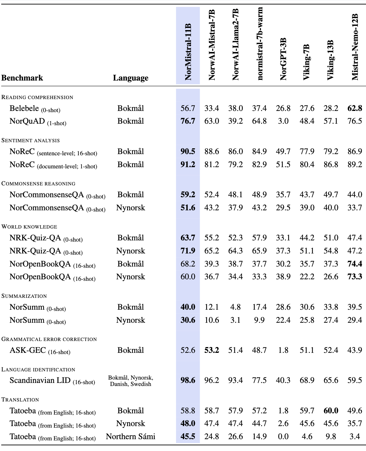 More details about the evaluation setup and the new Norwegian benchmarks will be described in upcoming papers.